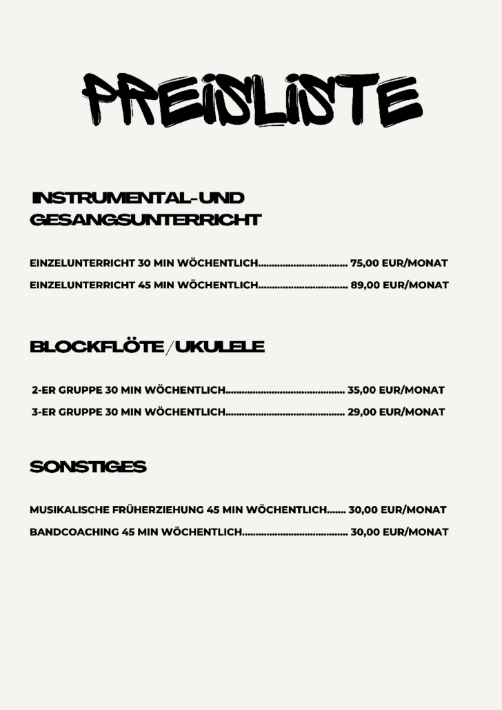 Abends statt. Die genauen Unterrichtszeiten werden mit der entsprechenden Lehrkraft